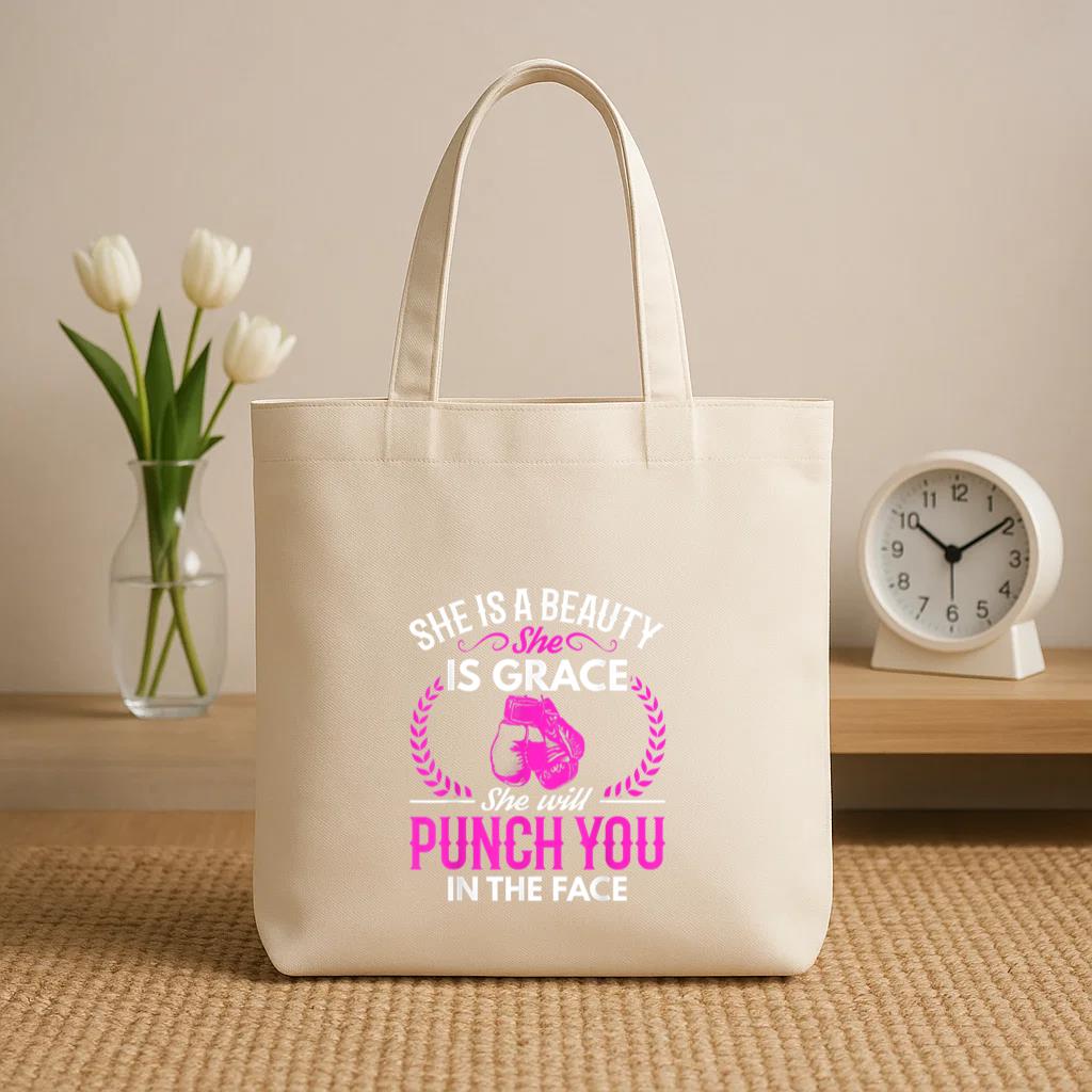 Boxing She Will Punch You In The Face Canvas Tote Bag